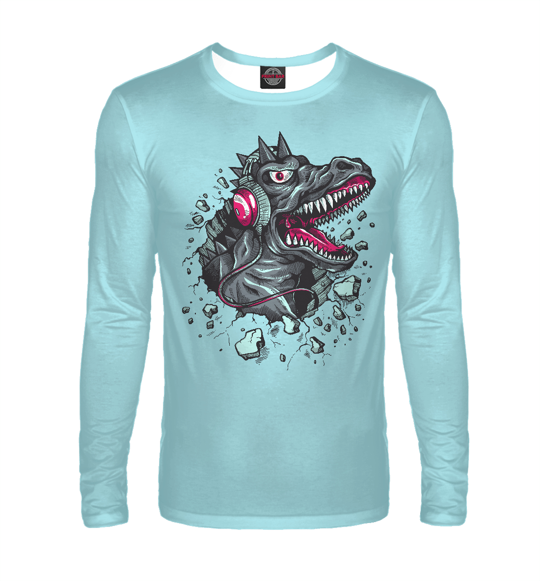 Мужской лонгслив с принтом «Динозавр - меломан»