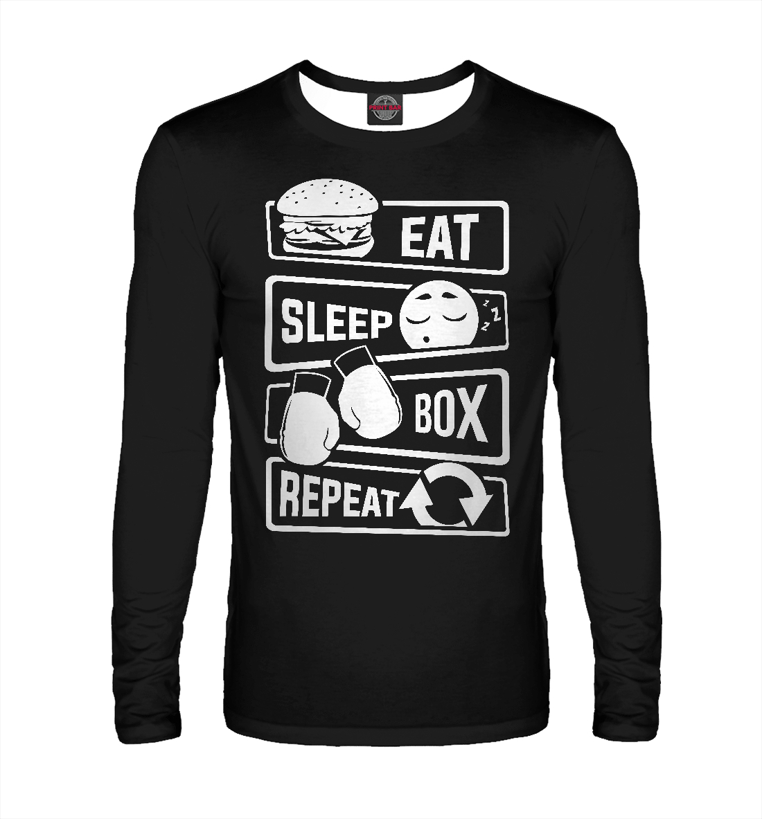 Мужской лонгслив с принтом «Есть, спать, бокс»