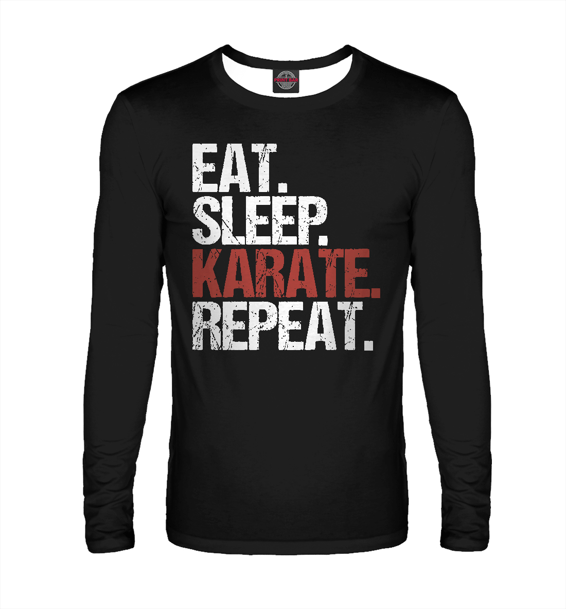 Мужской лонгслив с принтом «Есть, спать, карате»