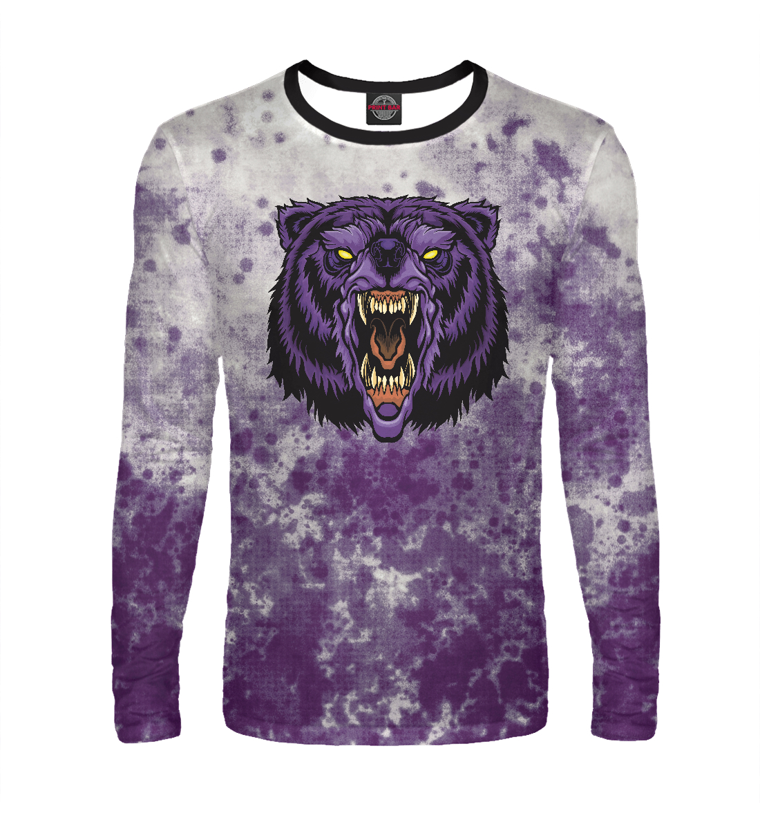 Мужской лонгслив с принтом «Фиолетовый медведь»