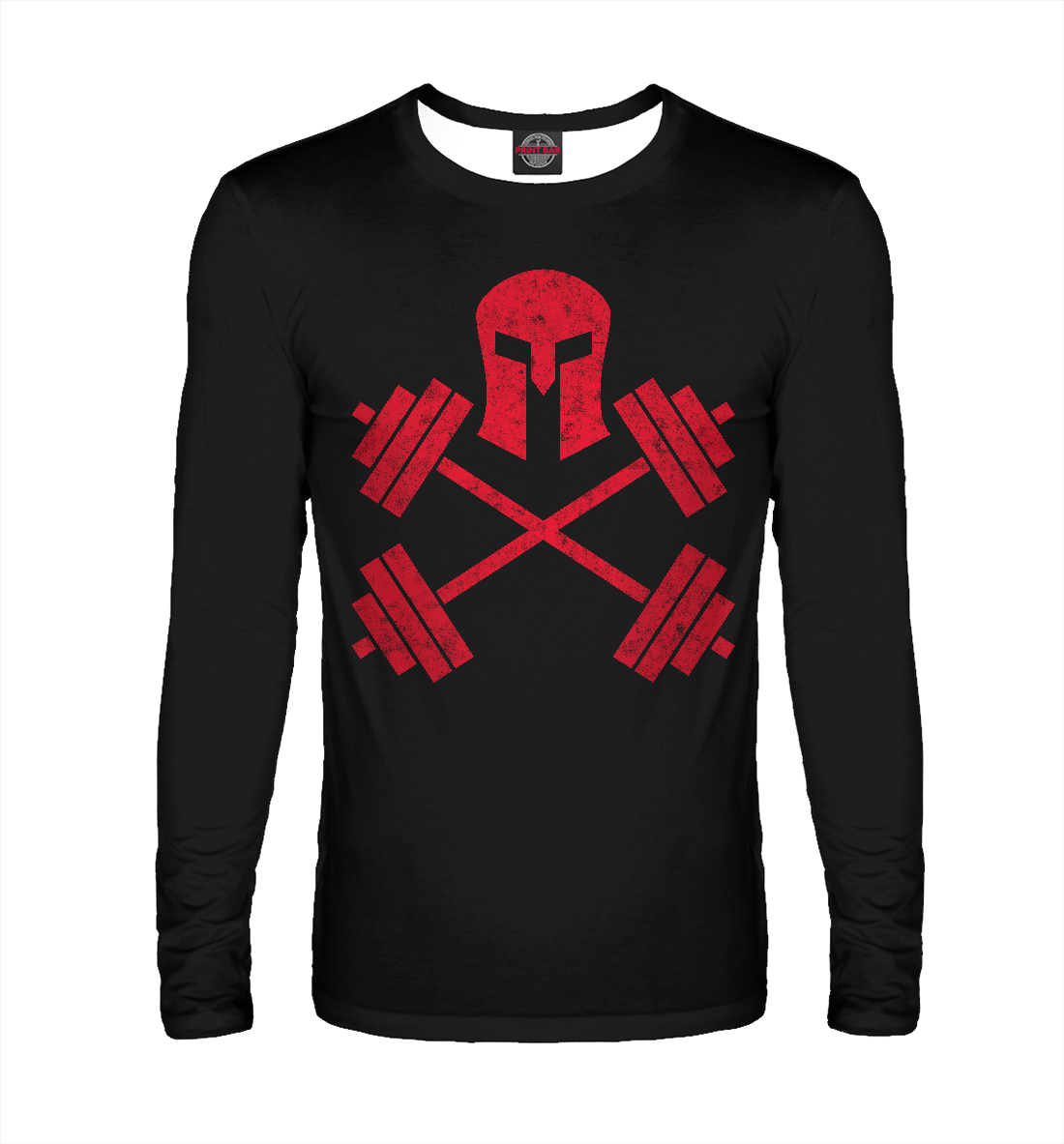 Мужской лонгслив с принтом «Гантели - Шлем»
