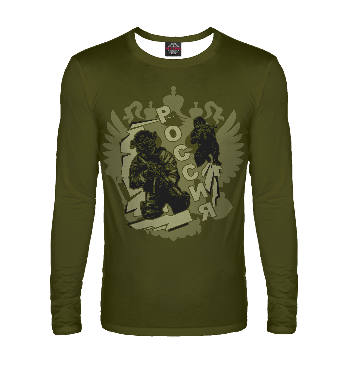 Мужской лонгслив с принтом «Герб и воины на оливковом фоне»