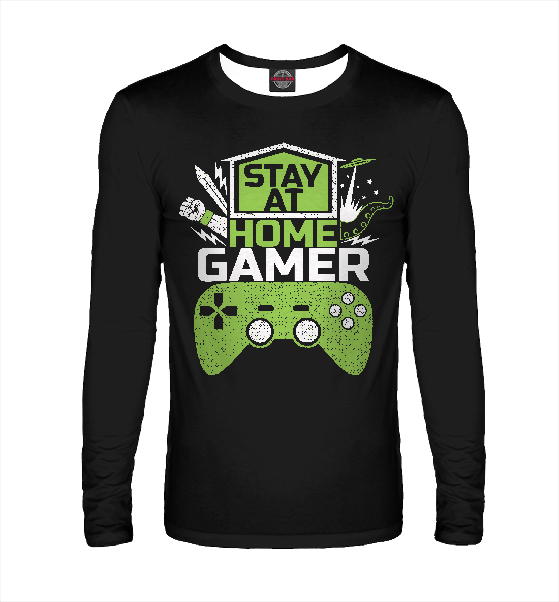 Мужской лонгслив с принтом «Геймер, сиди дома»