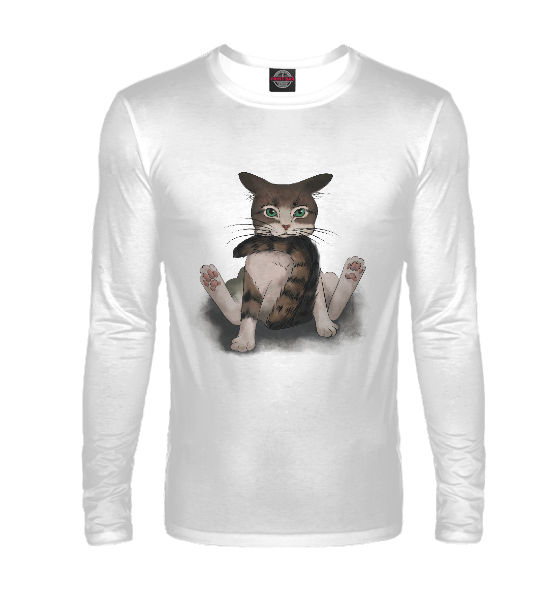 Мужской лонгслив с принтом «Котик сидит на хвосте»