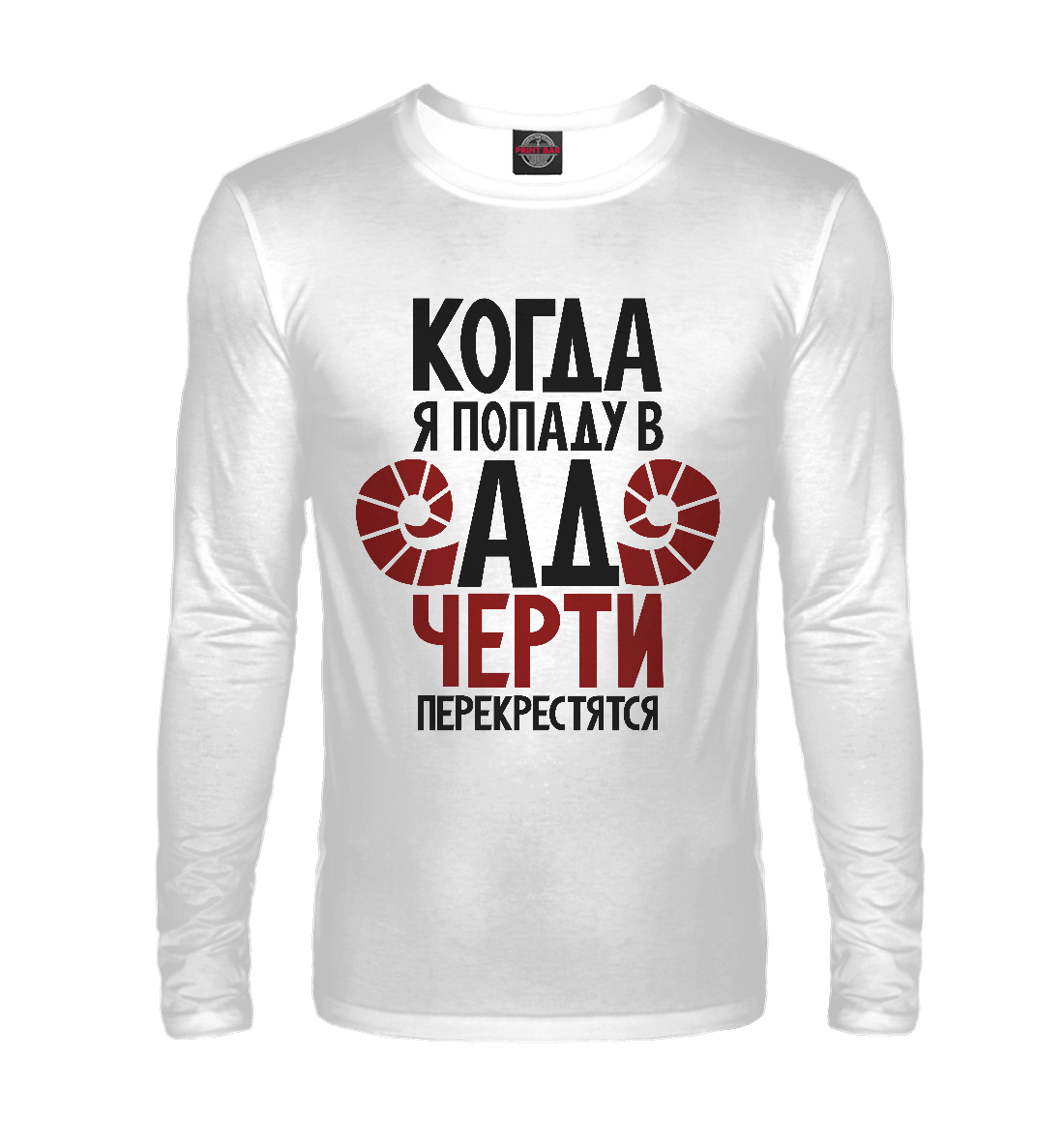 Мужской лонгслив с принтом «Жёсткий грешник на белом фоне»