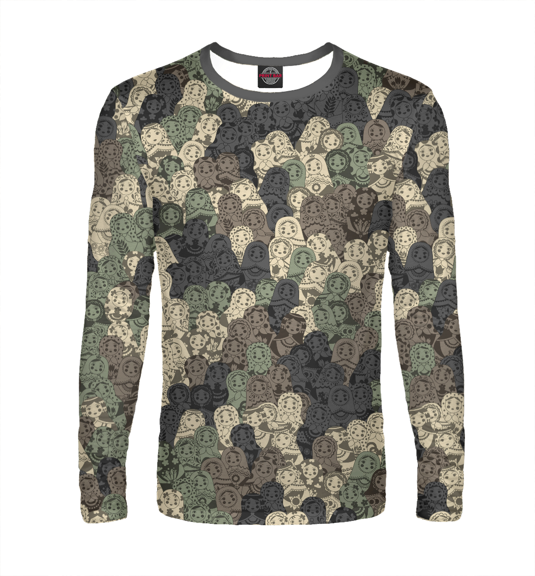 Мужской лонгслив с принтом «Камуфляж из матрёшек»