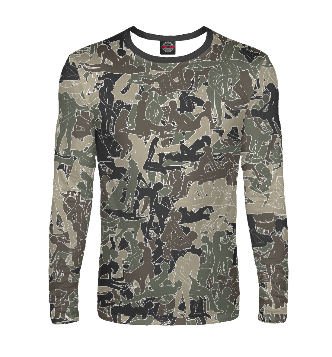 Мужской лонгслив с принтом «Камуфляж с позами»