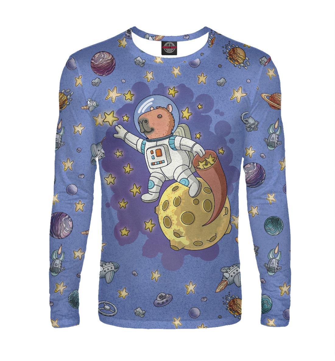 Мужской лонгслив с принтом «Капибара космонавт в космосе»
