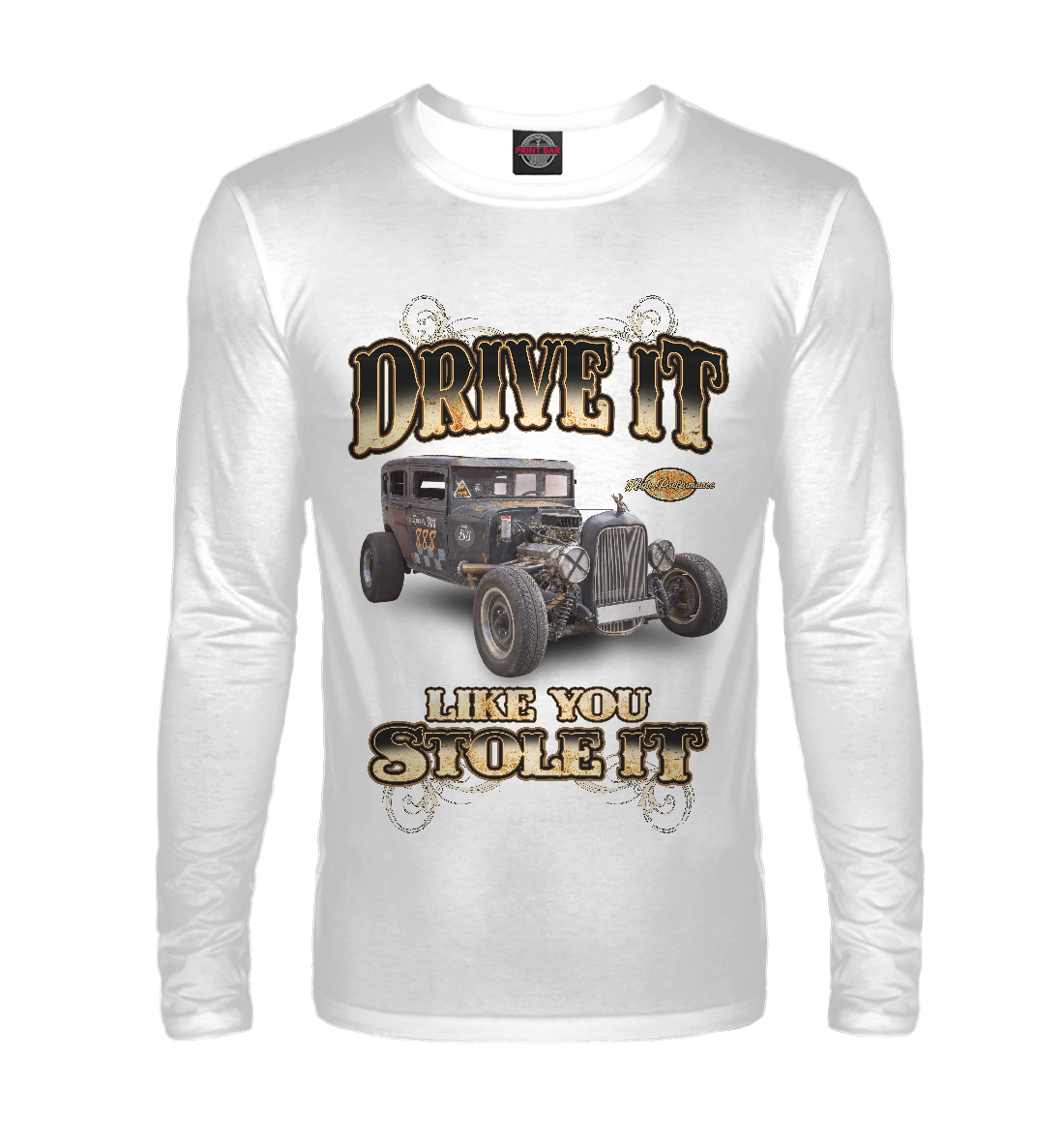 Мужской лонгслив с принтом «Классический хот род на белом фоне»