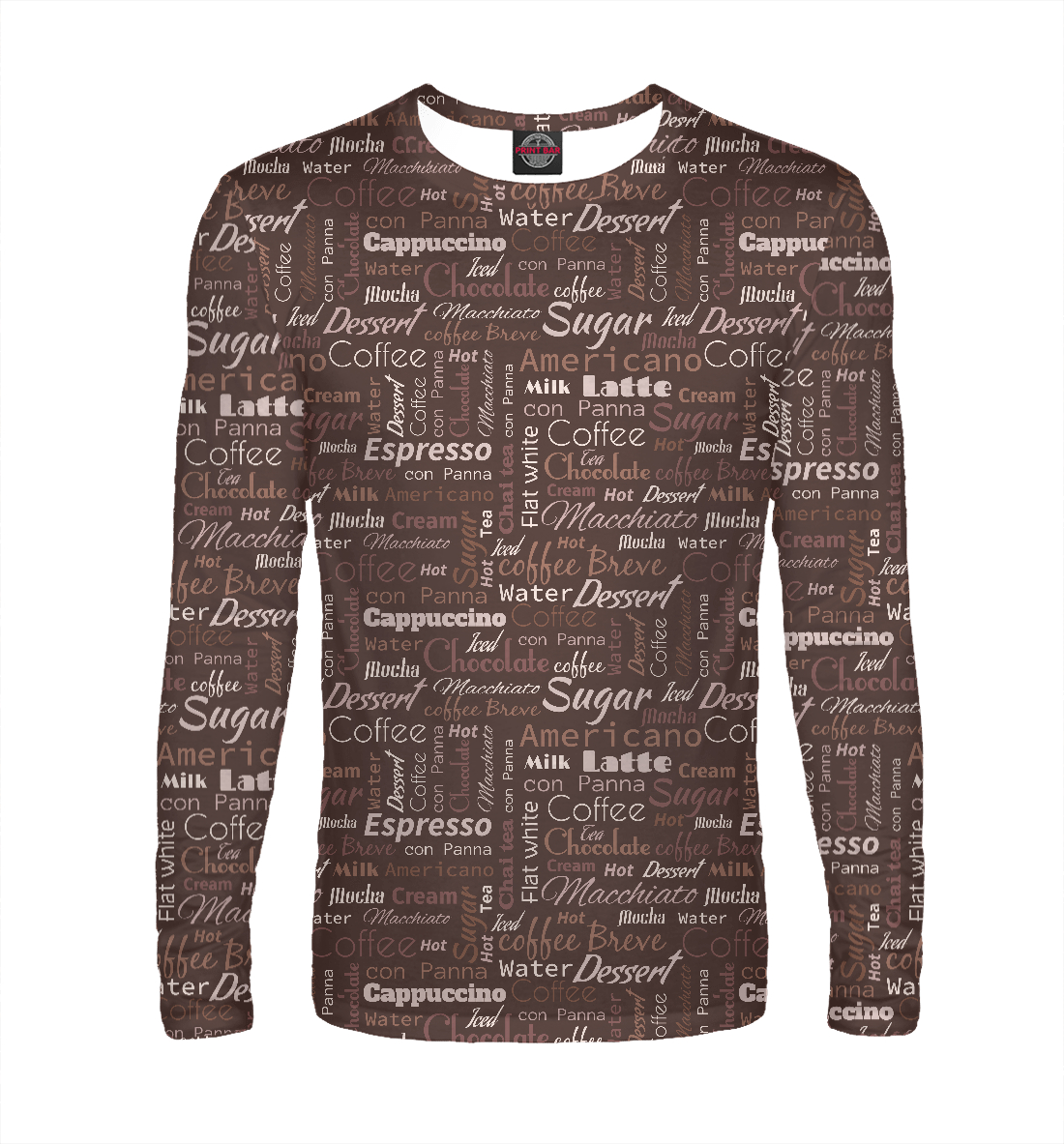 Мужской лонгслив с принтом «Кофейные Напитки»