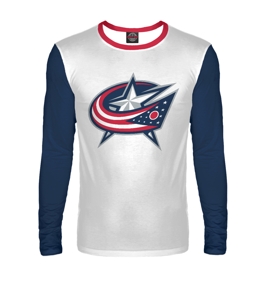 Мужской лонгслив с принтом «Коламбус Блю Джекетс (форма)»