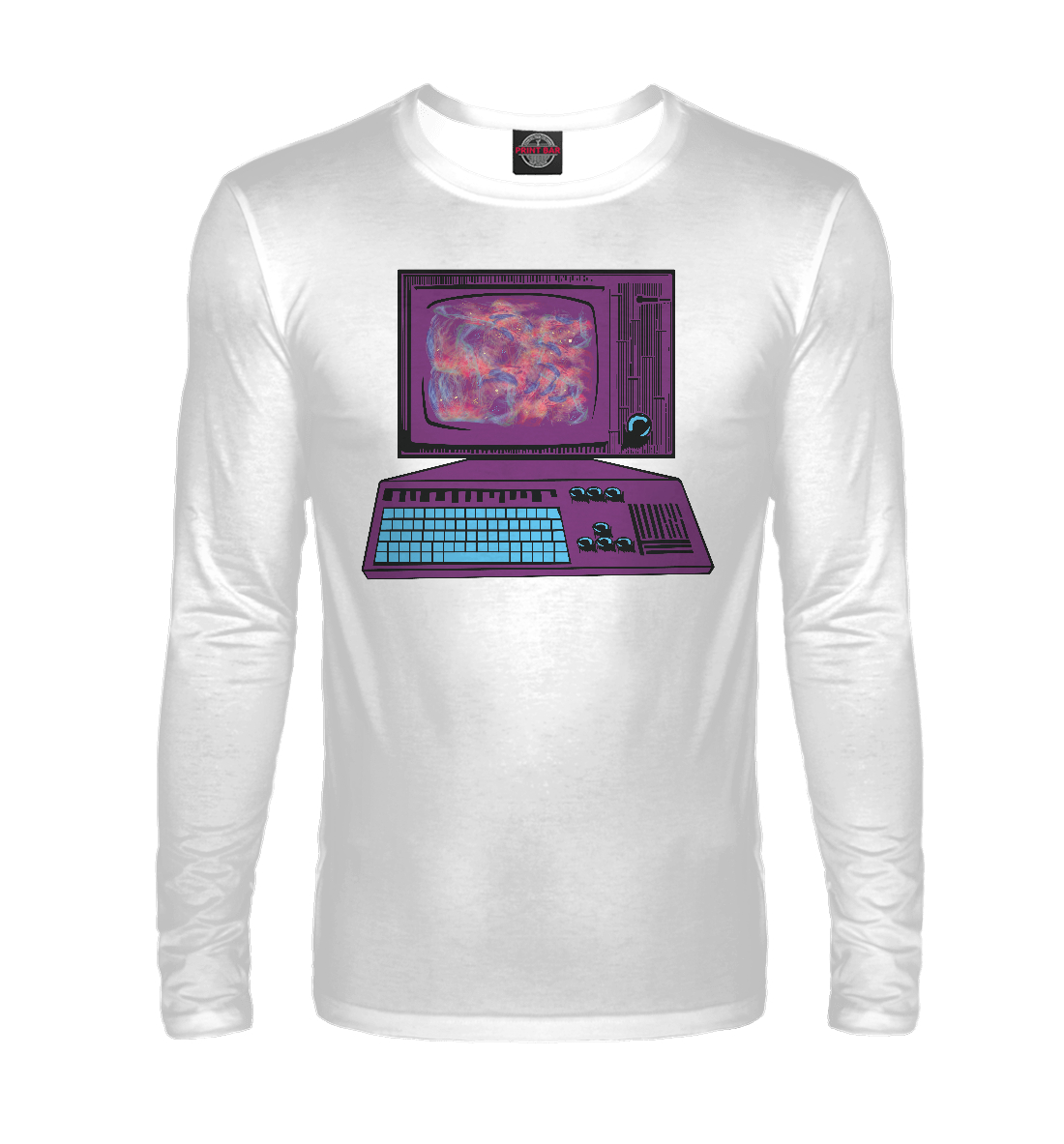 Мужской лонгслив с принтом «Компьютер с космосом»