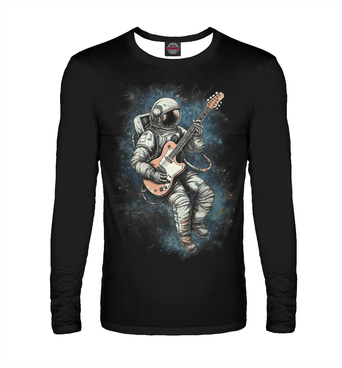 Мужской лонгслив с принтом «Космонавт играет на электрогитаре»