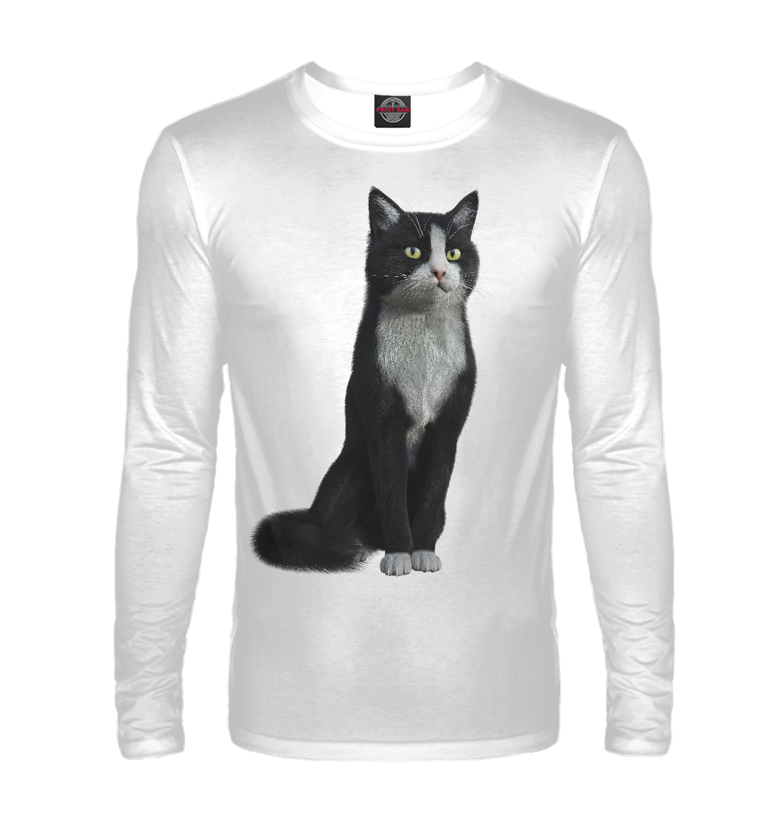Мужской лонгслив с принтом «Кот с манишкой»