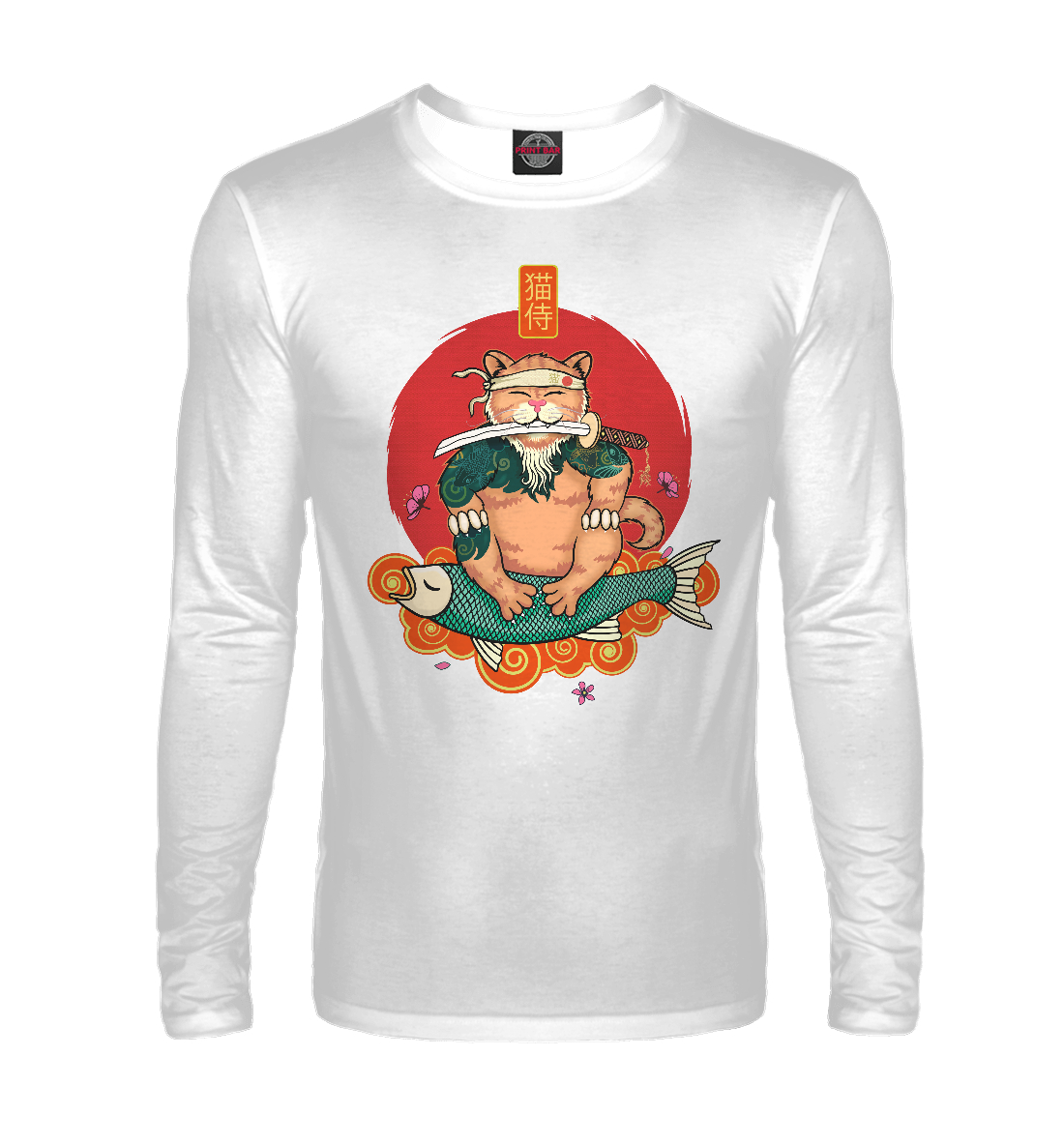 Мужской лонгслив с принтом «Кот самурай»