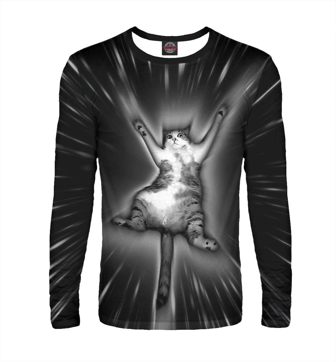 Мужской лонгслив с принтом «Кот в гиперпространстве»