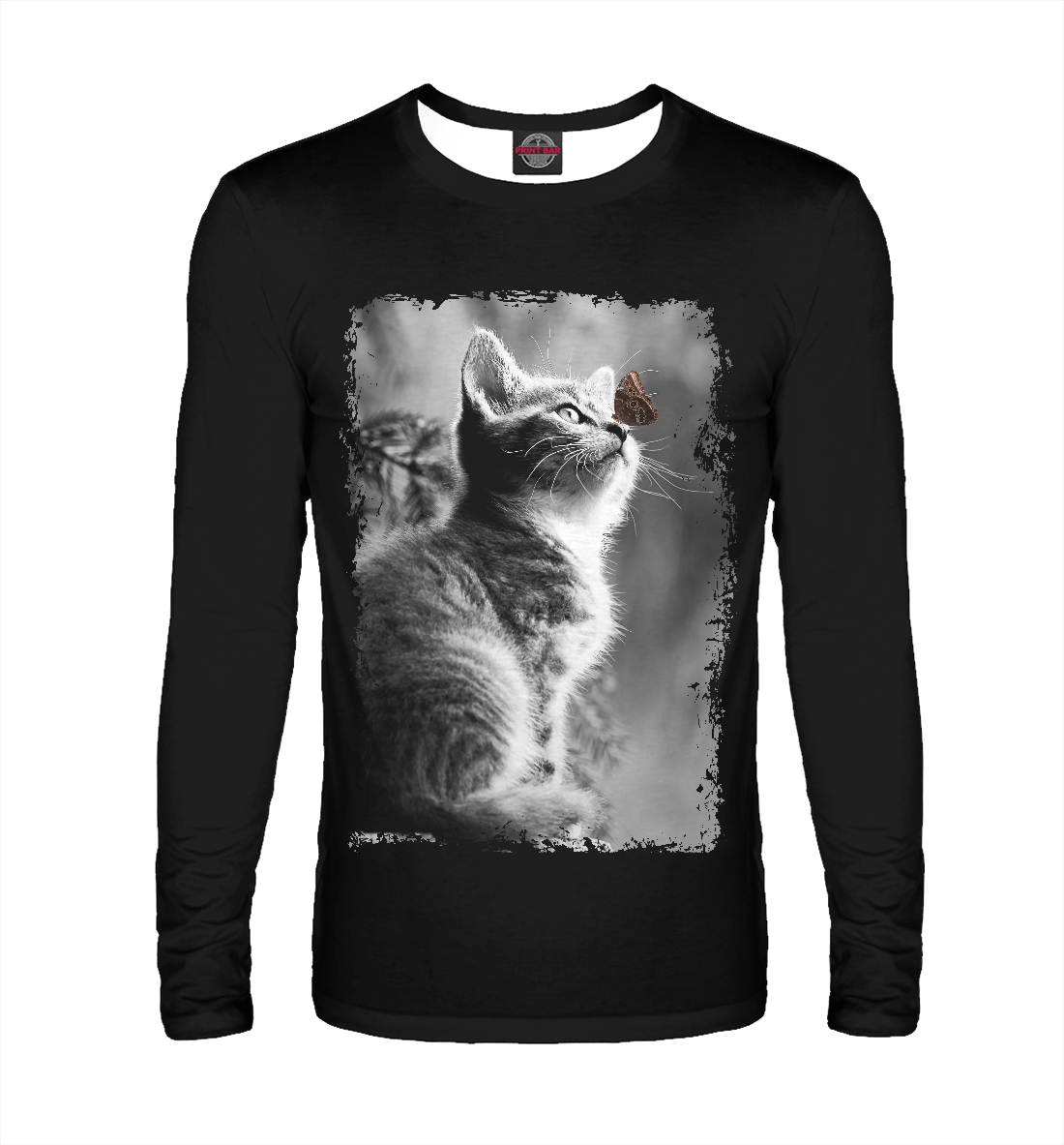 Мужской лонгслив с принтом «Котенок и бабочка»