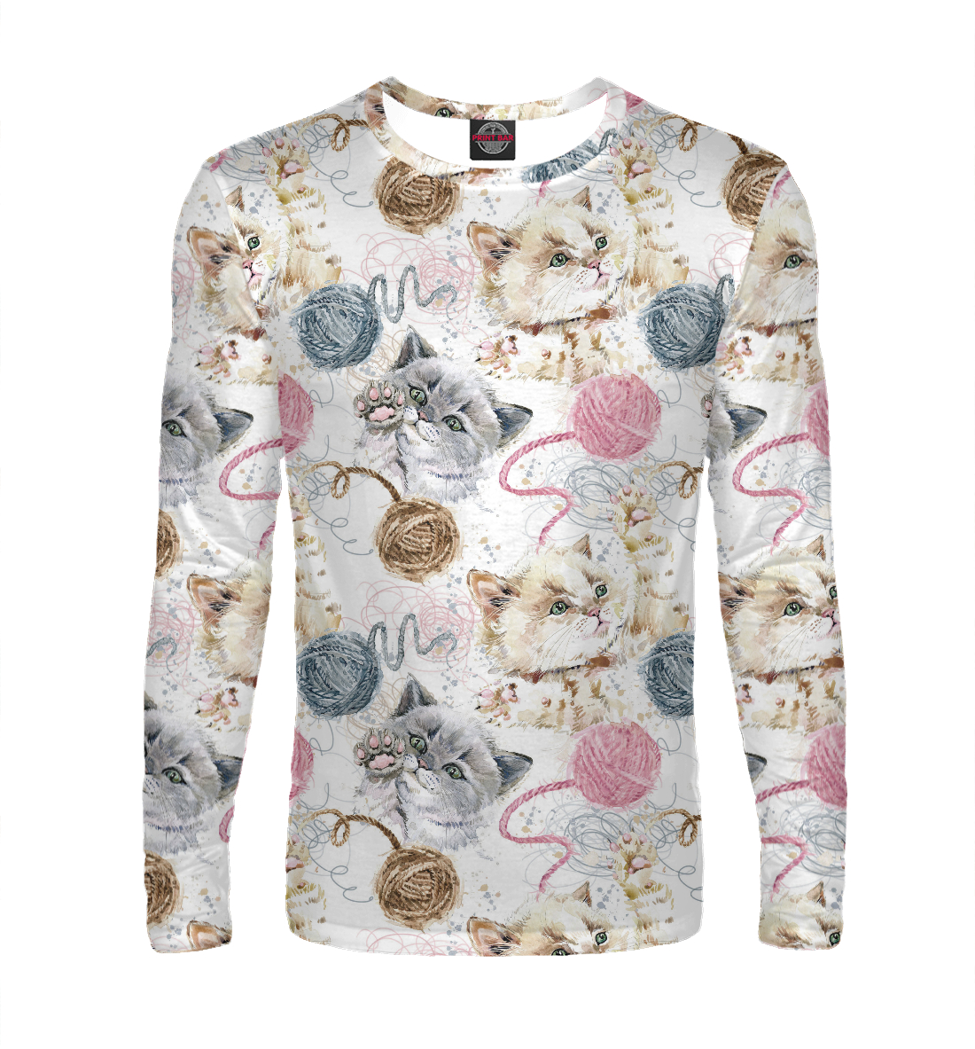 Мужской лонгслив с принтом «Котята с клубком»