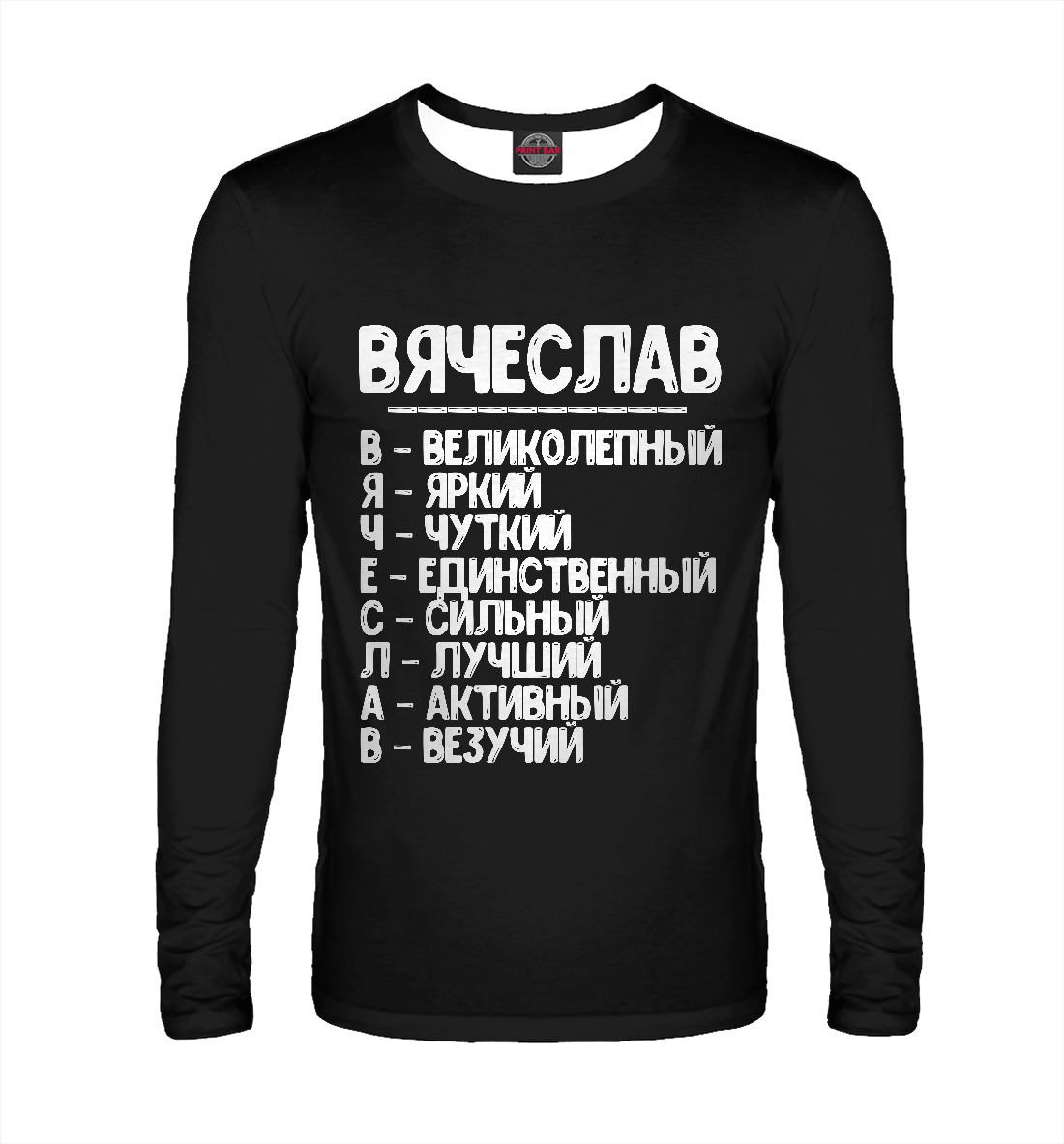 Мужской лонгслив с принтом «Красивые комплименты Вячеслав»