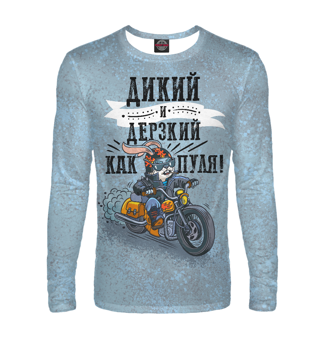 Мужской лонгслив с принтом «Кролик байкер дерзкий серый»