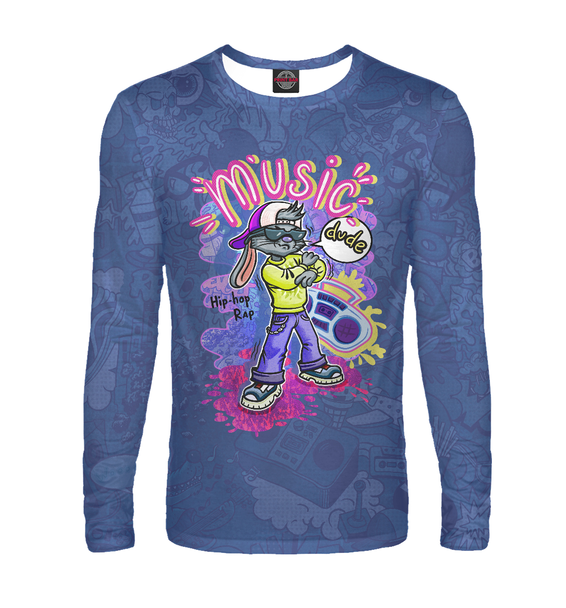 Мужской лонгслив с принтом «Кролик-рэпер»