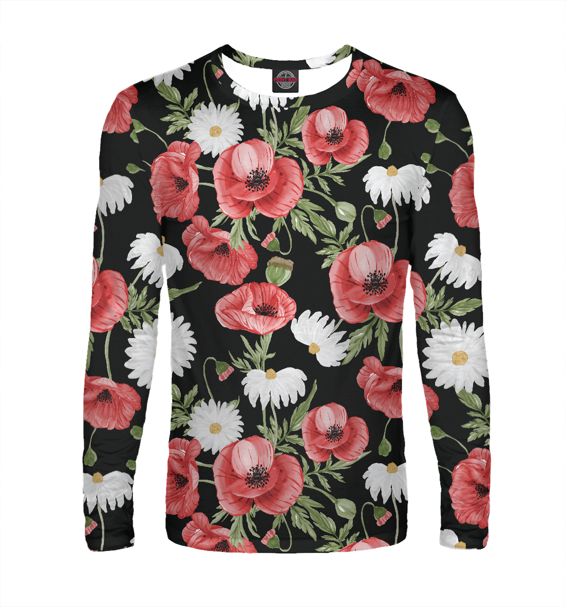 Мужской лонгслив с принтом «Мако-ромашковое поле»