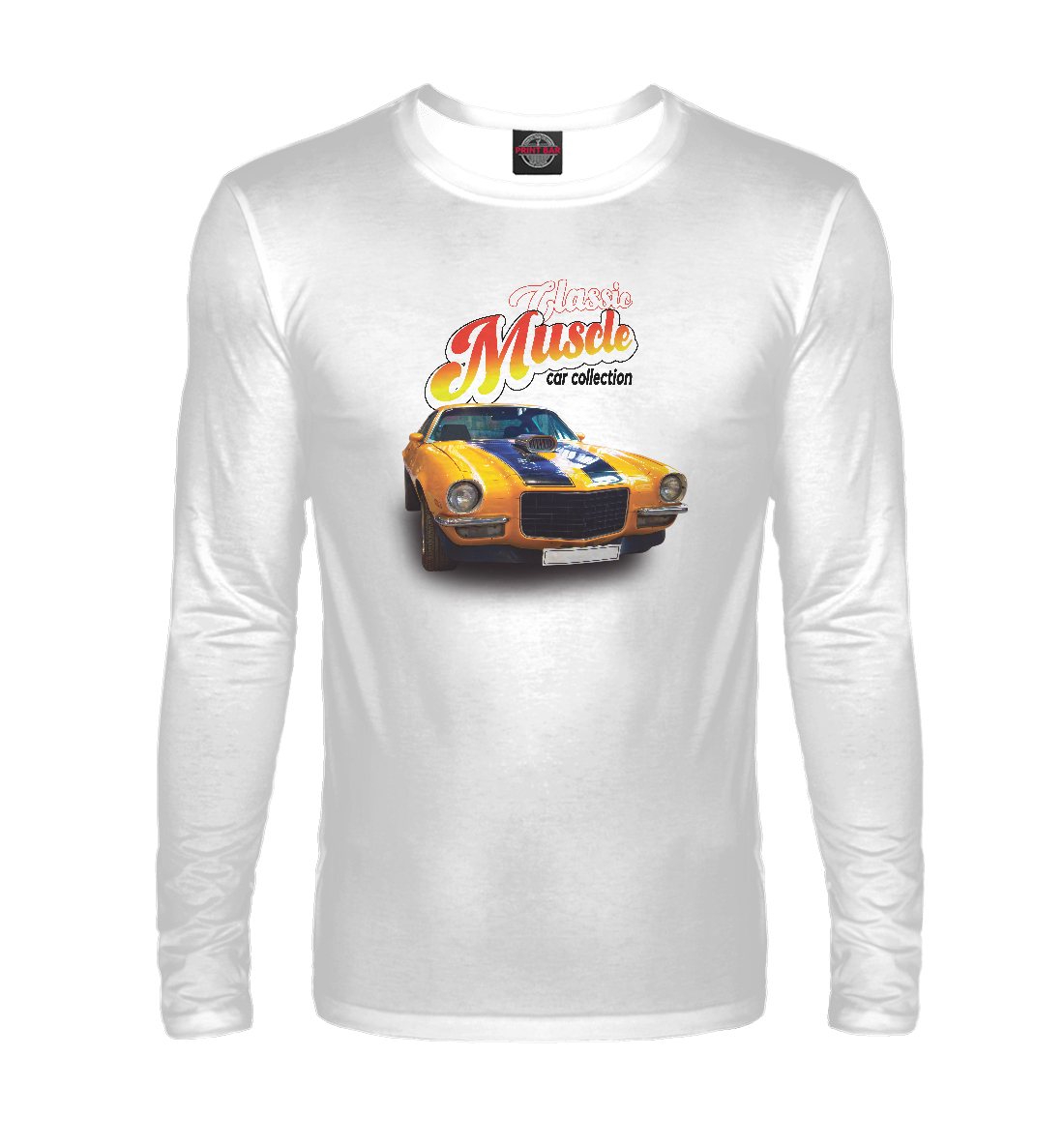 Мужской лонгслив с принтом «Маслкар Chevrolet Camaro на белом»