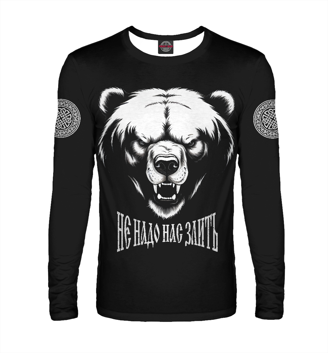 Мужской лонгслив с принтом «Медведь - не надо нас злить!»