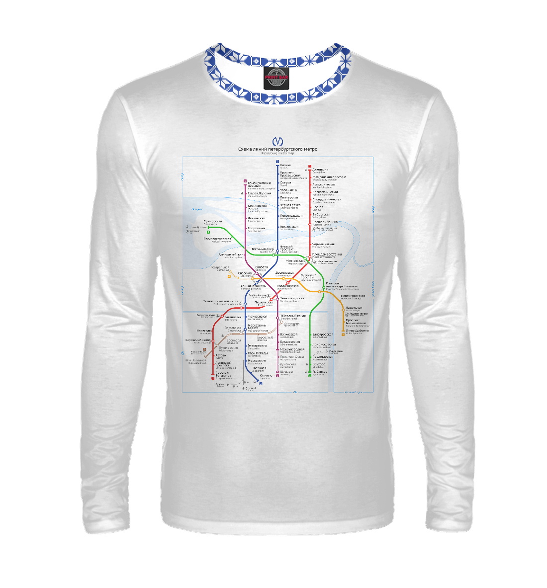 Мужской лонгслив с принтом «Метро Санкт-Петербурга»