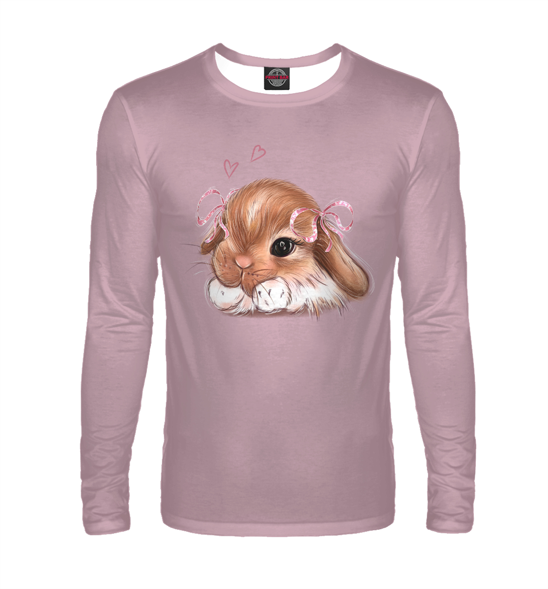 Мужской лонгслив с принтом «Милая крольчиха (розовый фон)»