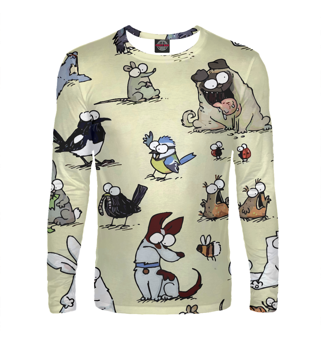 Мужской лонгслив с принтом «Милые животные»