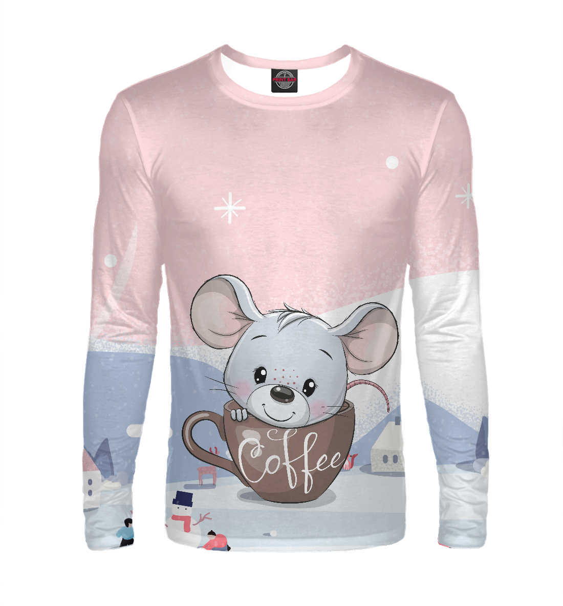 Мужской лонгслив с принтом «Мышонок в чашке кофе»