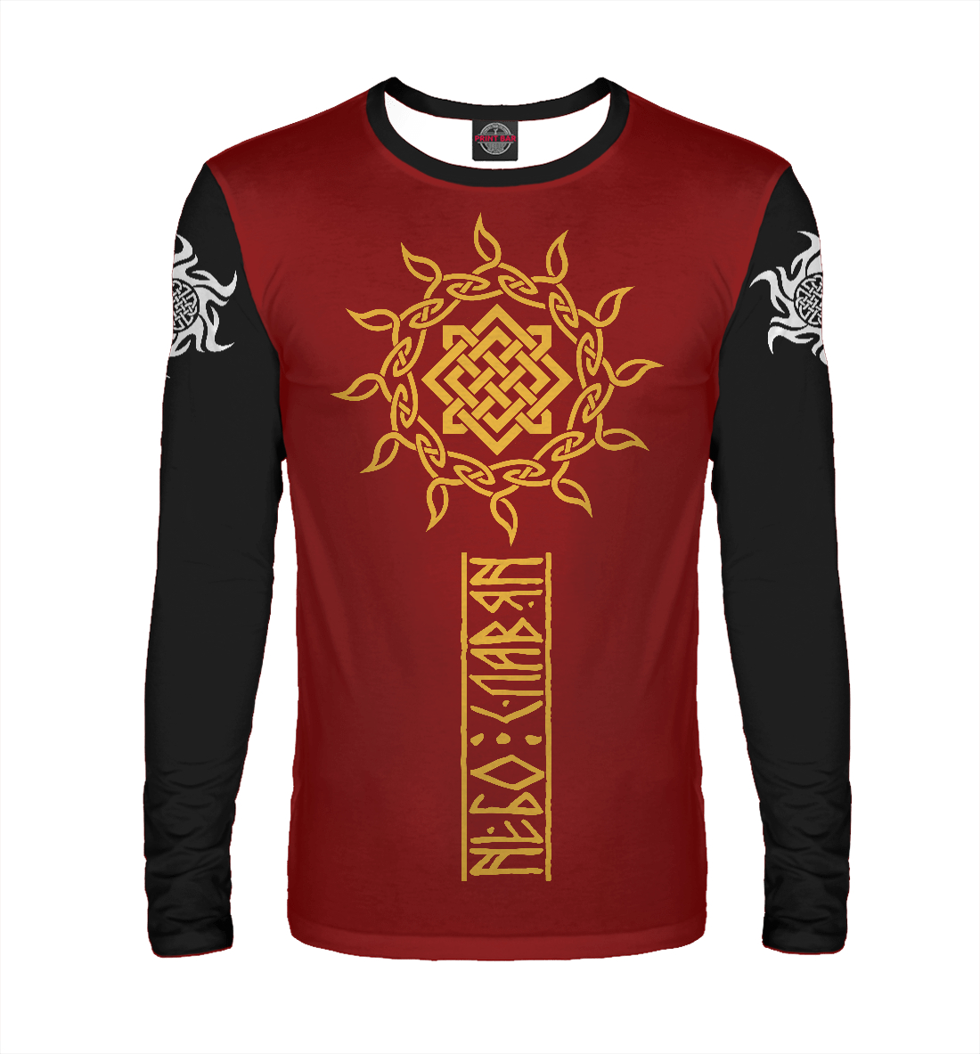 Мужской лонгслив с принтом «Небо славян на красно-чёрном фоне»