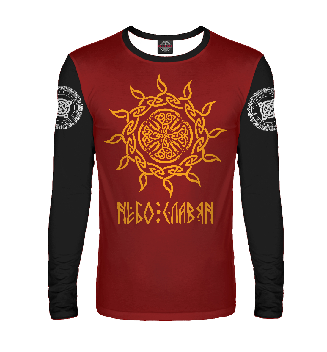 Мужской лонгслив с принтом «Небо славян в символике (красно-чёрный)»
