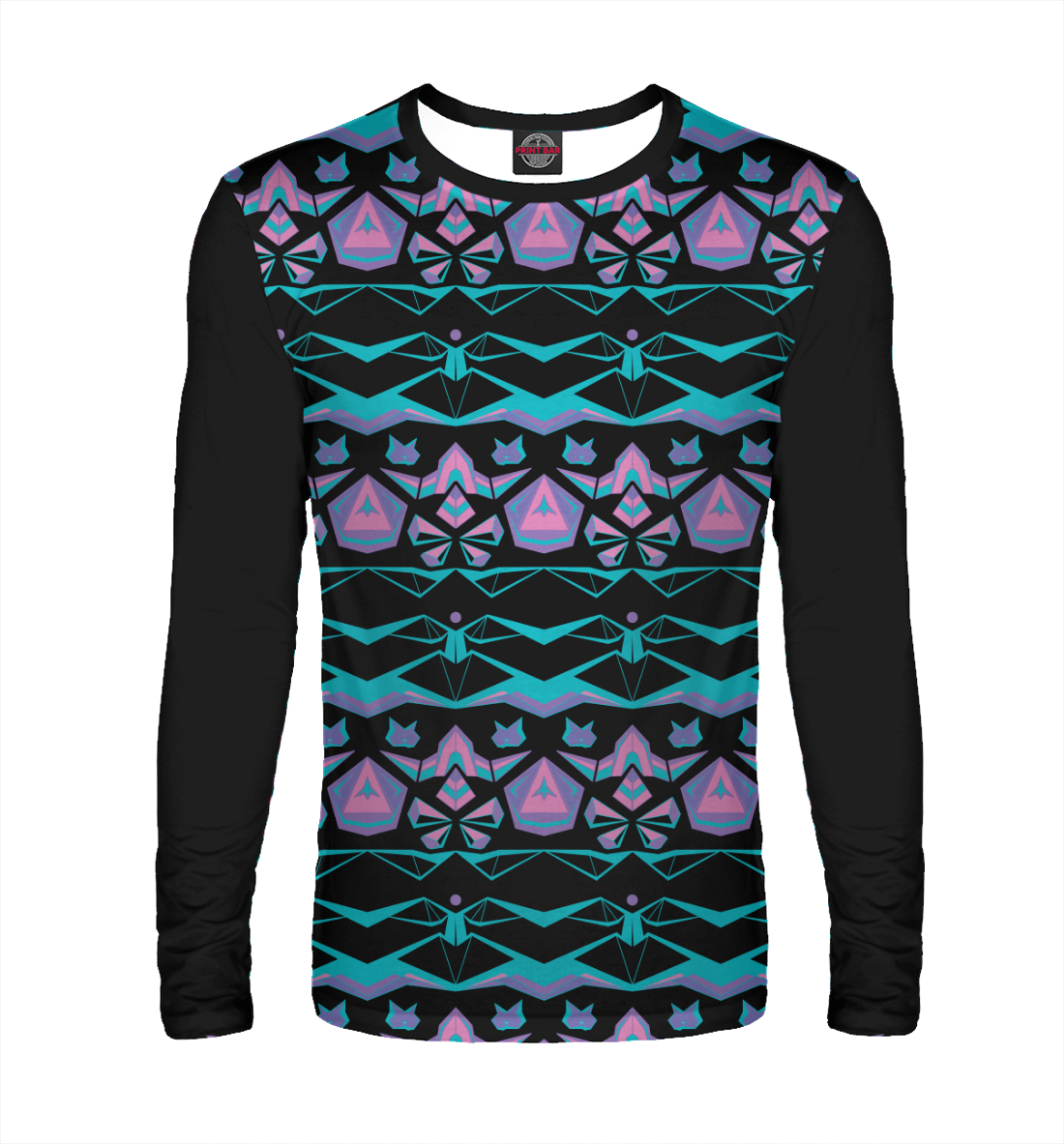 Мужской лонгслив с принтом «Неоновые космокотики и пирамиды»