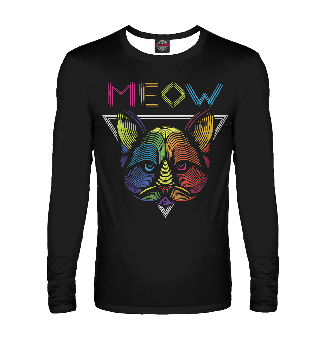 Мужской лонгслив с принтом «Неоновый кот»