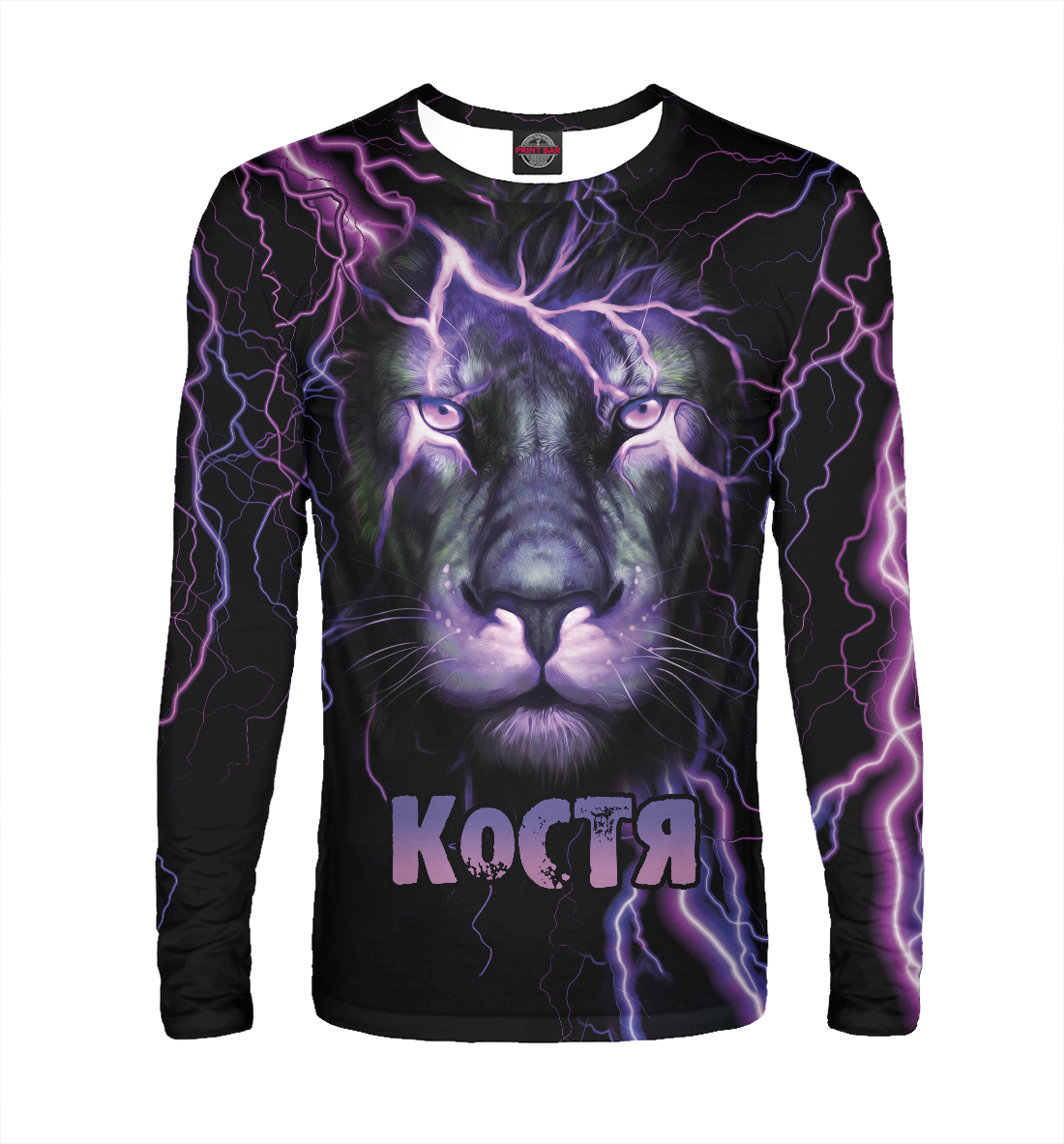 Мужской лонгслив с принтом «Неоновый лев Костя»
