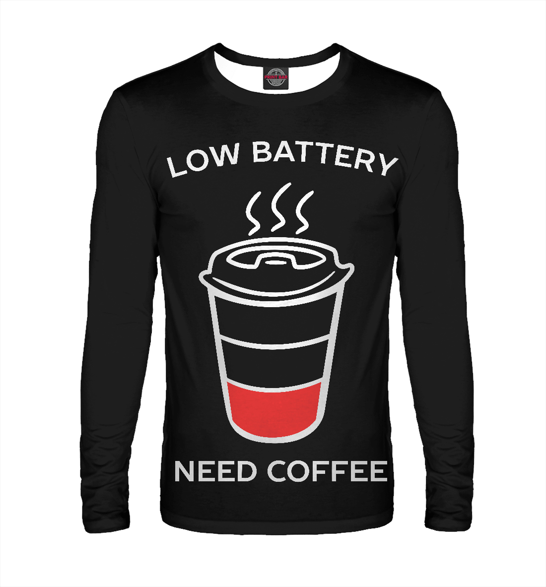 Мужской лонгслив с принтом «Низкий заряд - нужен кофе»