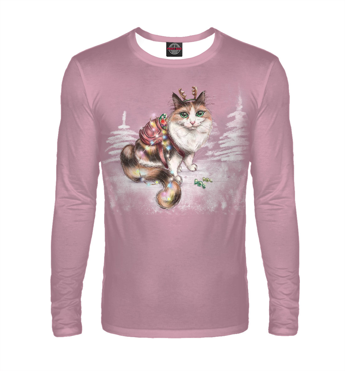 Мужской лонгслив с принтом «Новогодняя кошечка»