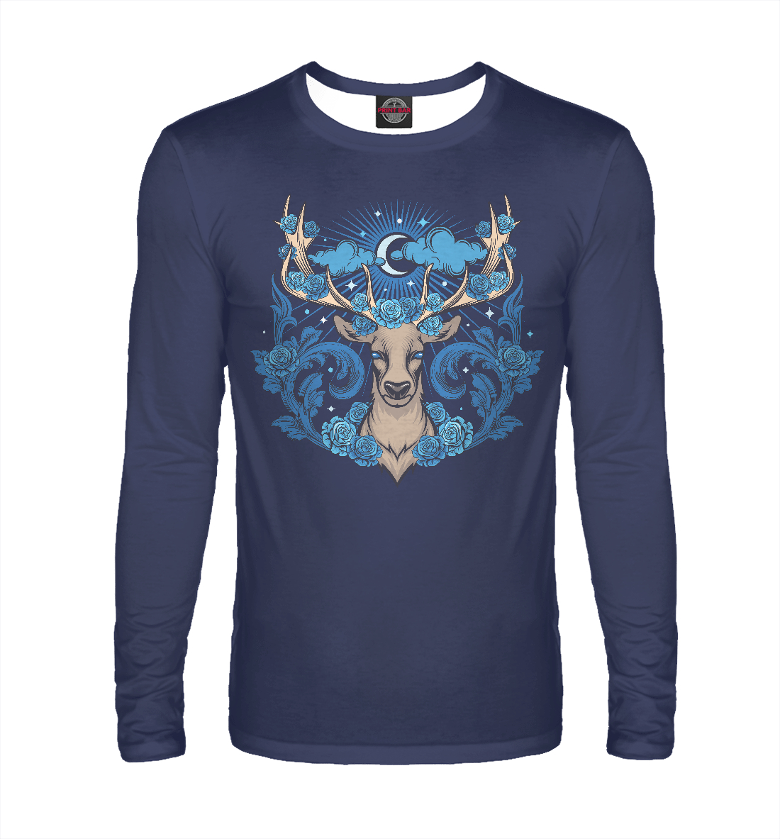 Мужской лонгслив с принтом «Олень с голубыми розами»