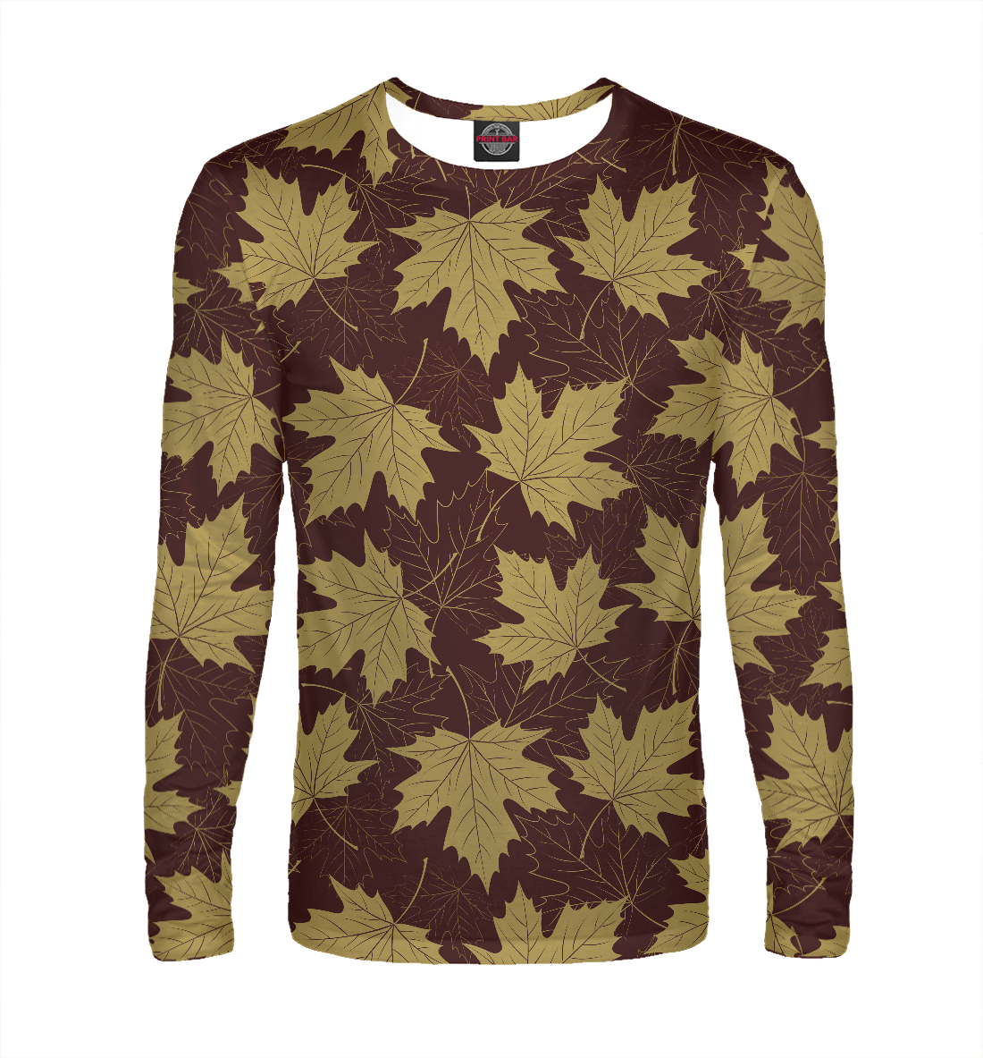 Мужской лонгслив с принтом «Осенние листы (коричневый фон)»