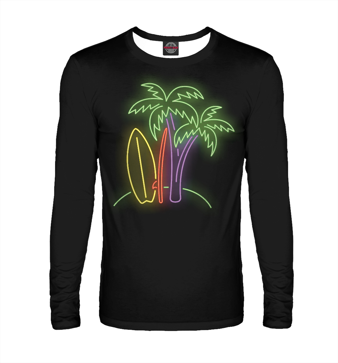 Мужской лонгслив с принтом «Пальмы и серфинг»