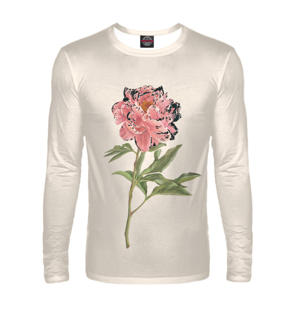 Мужской лонгслив с принтом «Пион на персиковом фоне»
