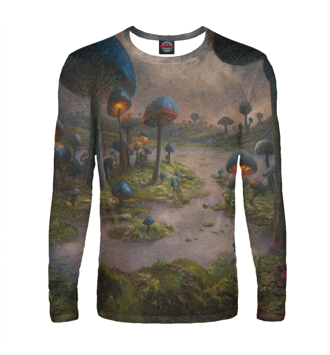 Мужской лонгслив с принтом «Планета волшебных грибов»