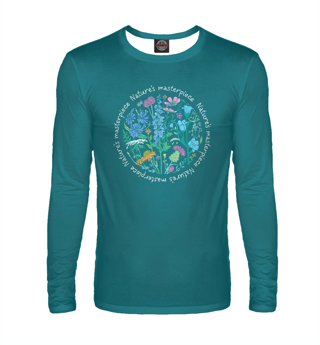 Мужской лонгслив с принтом «Полевые цветы в круге»