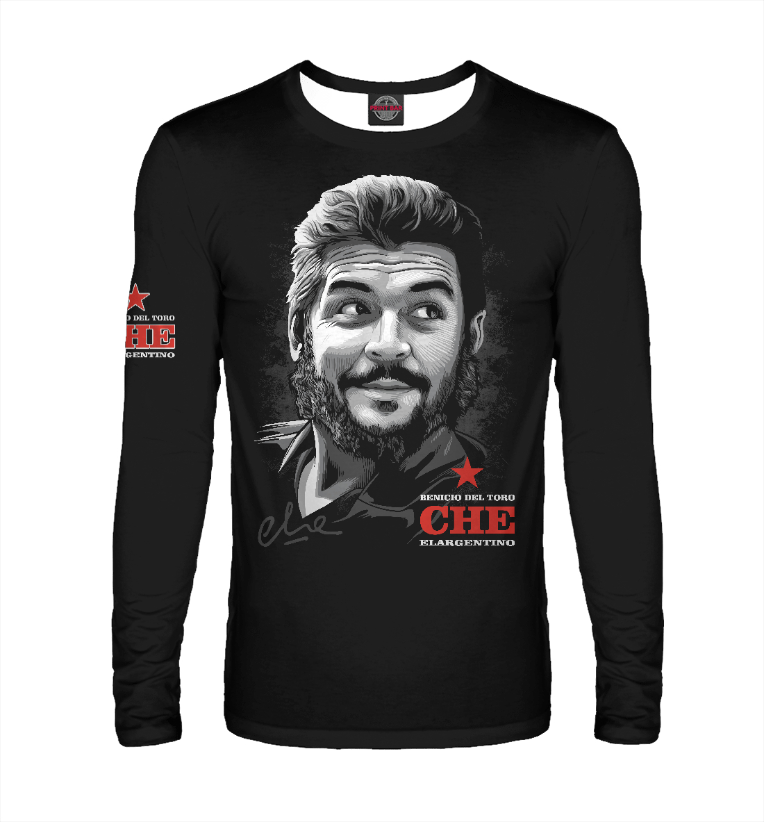 Мужской лонгслив с принтом «Портрет Че Гевары (чёрный фон)»