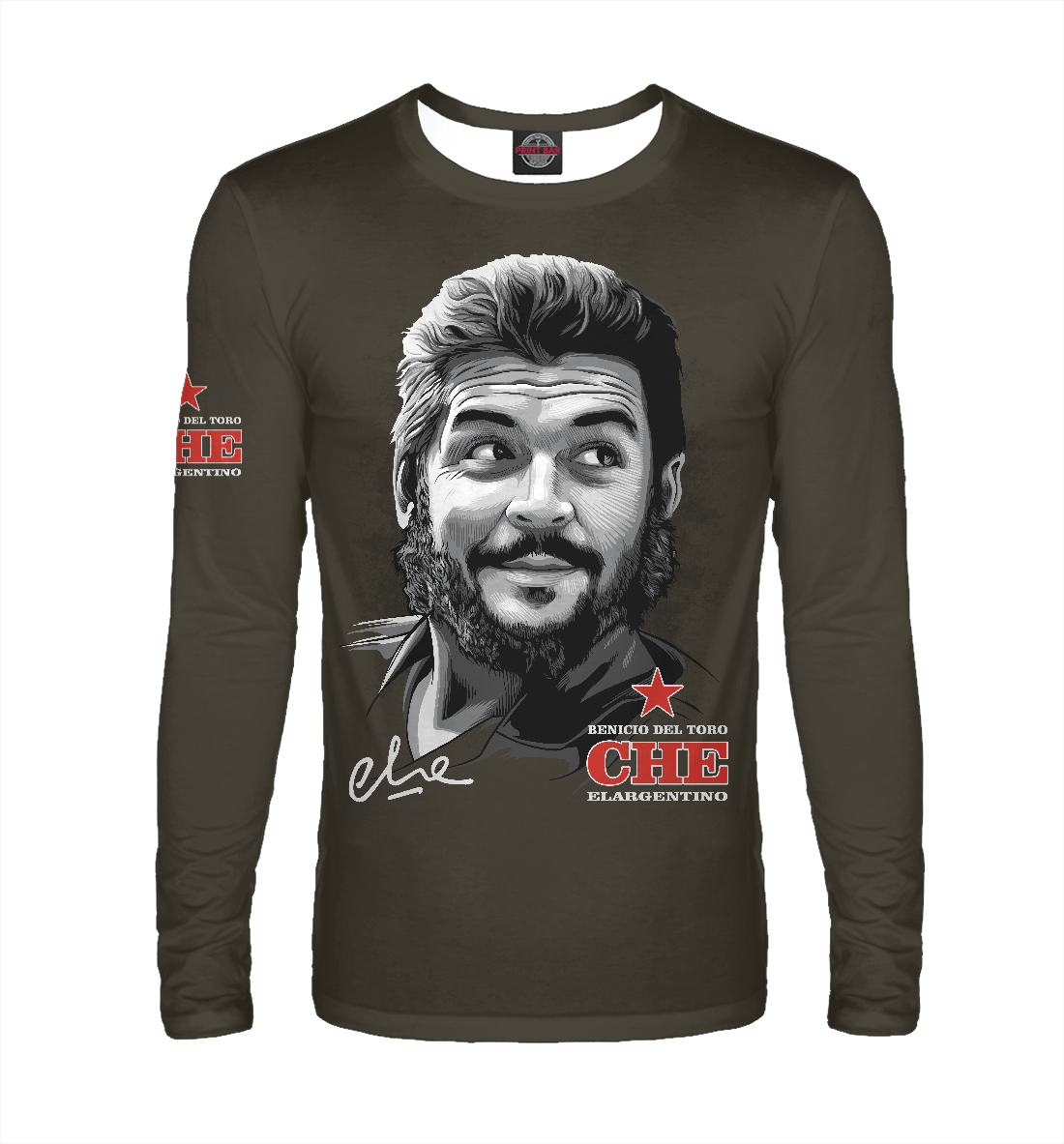 Мужской лонгслив с принтом «Портрет Че Гевары (фон хаки)»