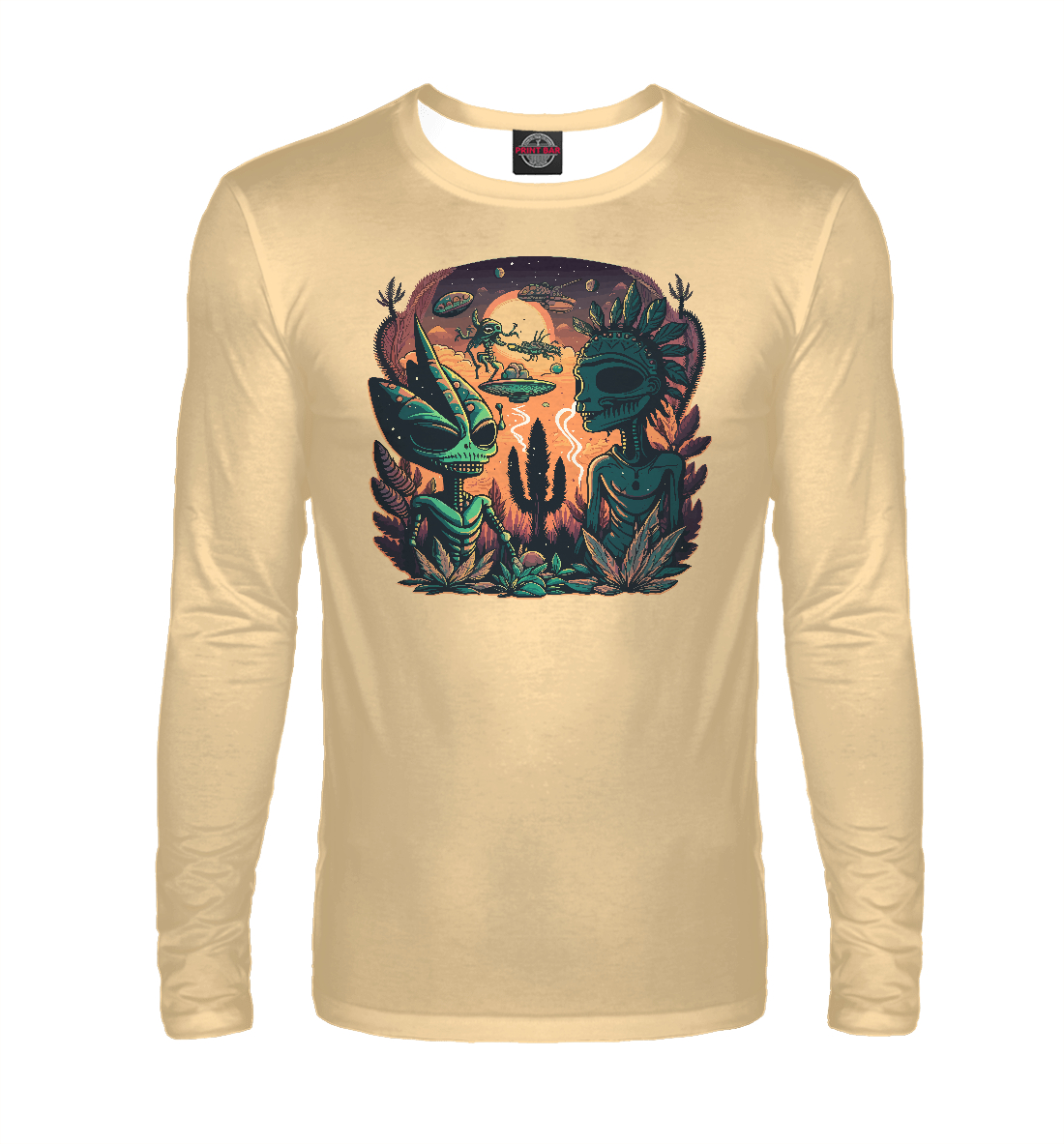 Мужской лонгслив с принтом «Пришельцы в Мексике»