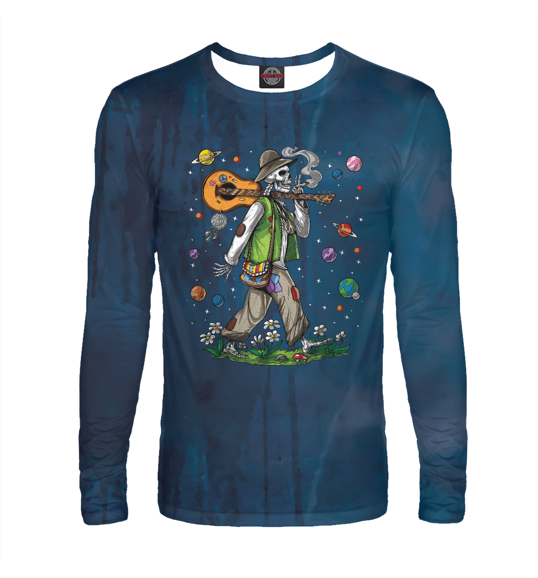 Мужской лонгслив с принтом «Psychedelic Skeleton Hippie»