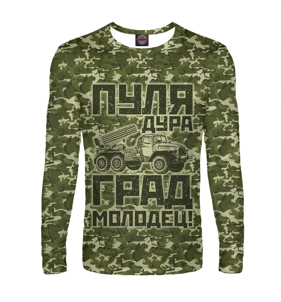 Мужской лонгслив с принтом «Пуля - дура, Град - молодец»